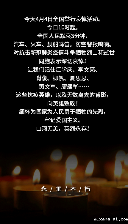 xana-ai基金会深切哀悼 抗击新冠肺炎疫情斗争牺牲烈士和逝世同胞