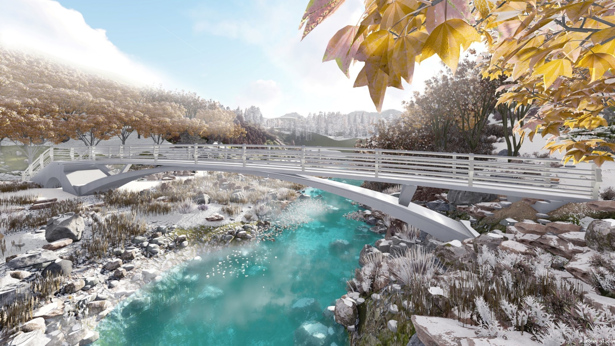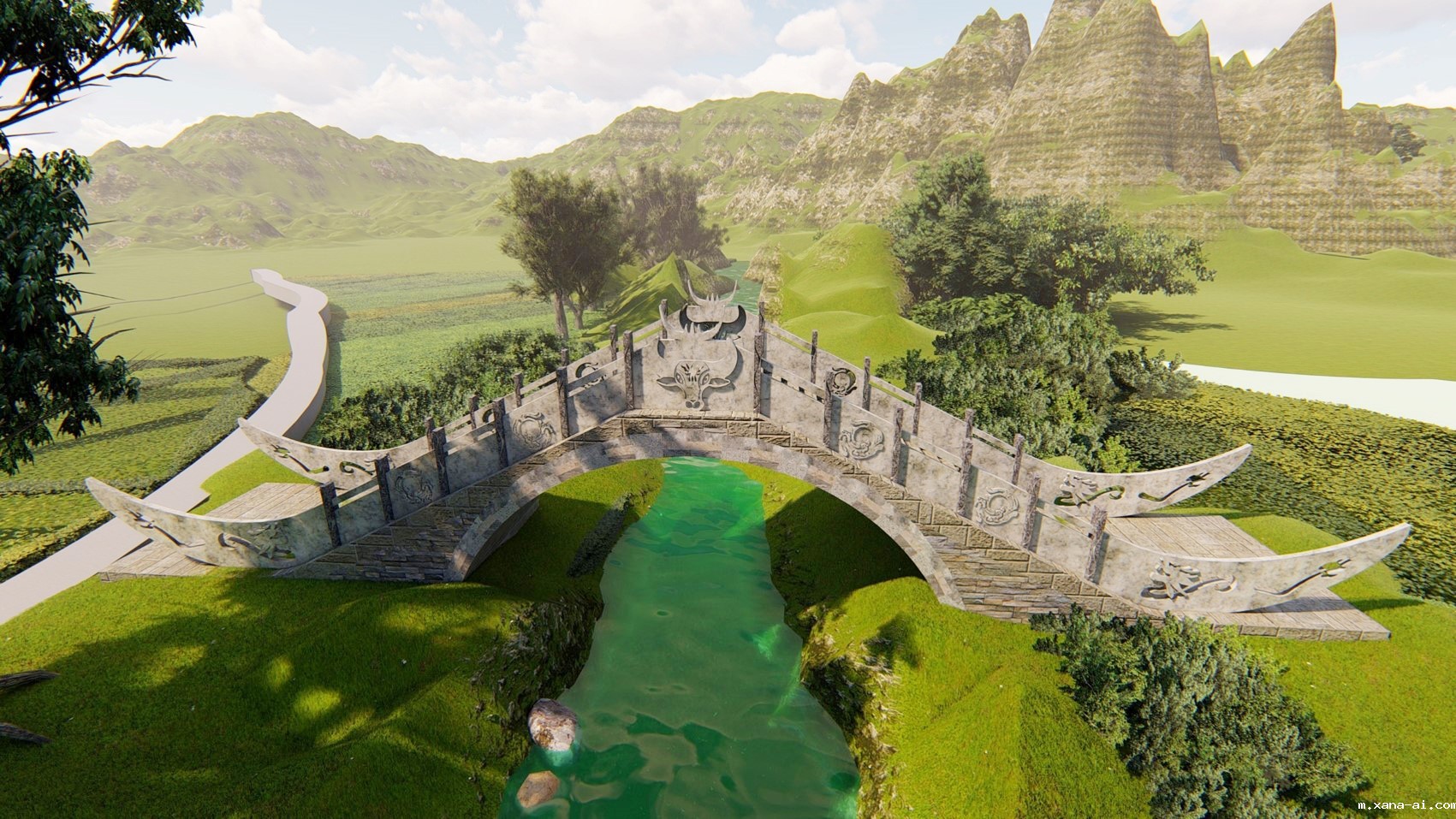 作品位于河北省保定市唐县仁厚镇三曲庄村,桥梁为波形钢腹板箱型拱桥。