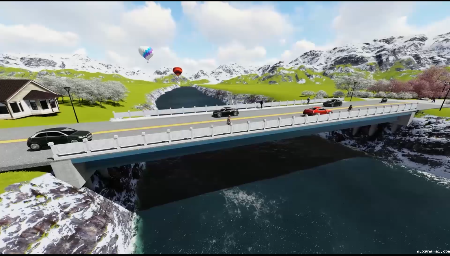 作品位于重庆市奉节县白帝镇,桥梁为单跨35米的斜腿刚构桥。