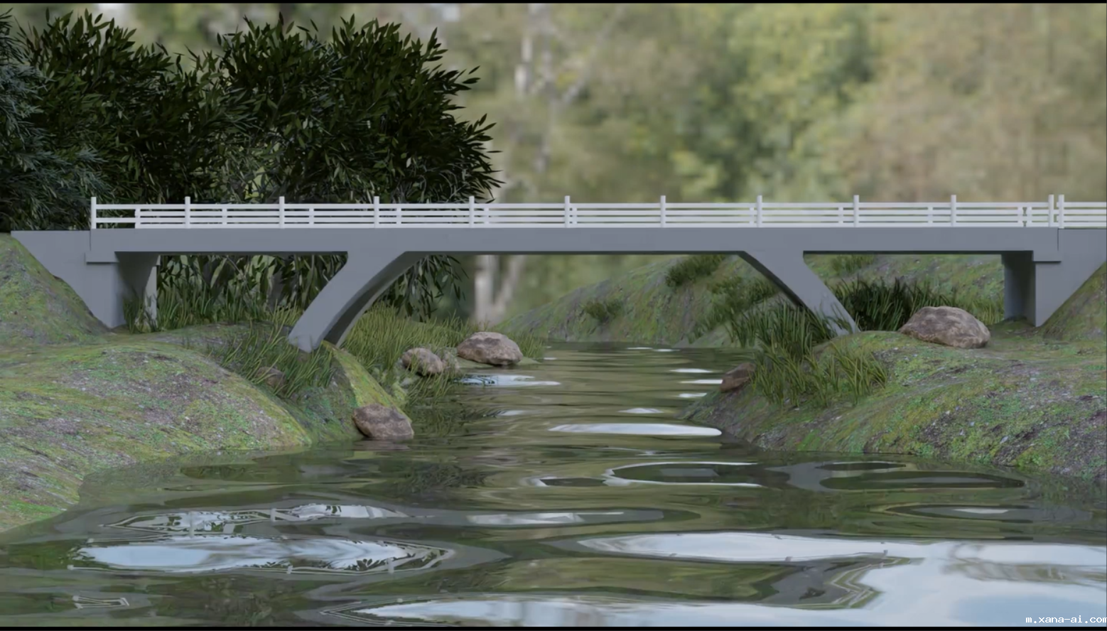 作品位于河北省保定市唐县,桥梁为单跨30米的桁架梁桥。