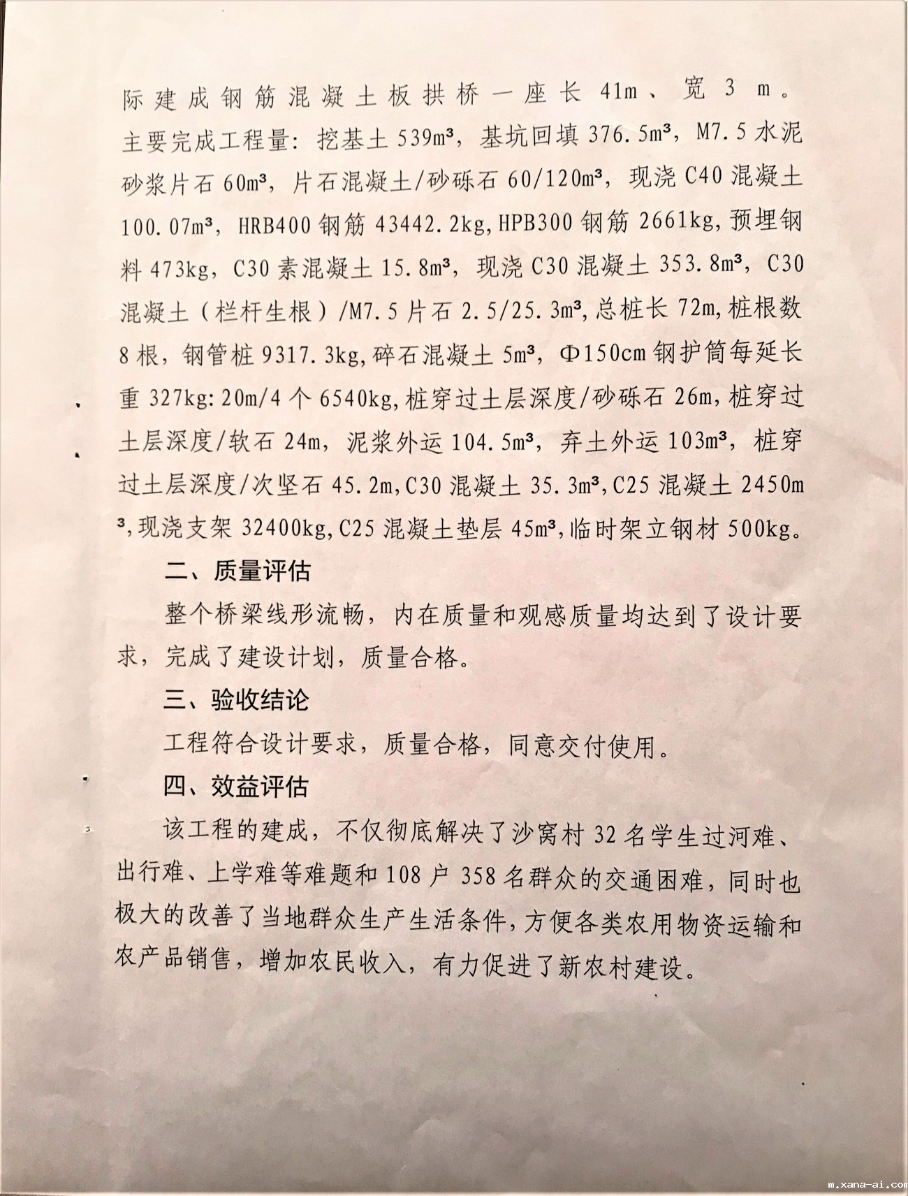 陕西佛坪县长角坝镇首座铁道工程师桥审计报告
