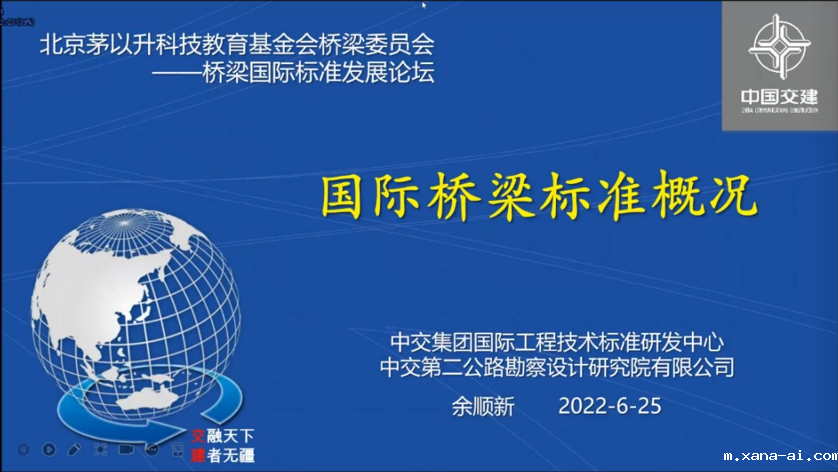 中交二公院余顺新做了《国际桥梁标准概况》的报告,分别从国外工程标准研究情况、美欧日澳英桥梁标准概况、中外桥梁标准的主要差异、中国桥梁标准走出去建议等四方面进行了交流。较为全面介绍了中交二公院在标准科研方面的成果,总结了国外桥梁标准体系特点,从标准体制、编制、管理、技术、更新及应用等层面分析了中外桥梁标准的差异,提出了建立国际标准互认体系、加强中国标准属地化管理、加强标准人才培养等七条中国标准走出去建议。