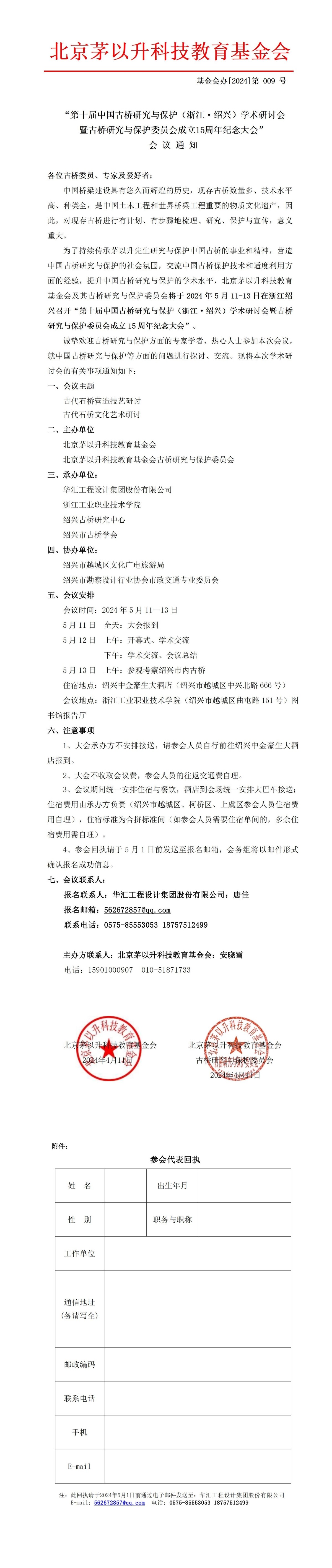 “第十届中国古桥研究与保护(浙江·绍兴)学术研讨会暨古桥研究与保护委员会成立15周年纪念大会”会议通知
