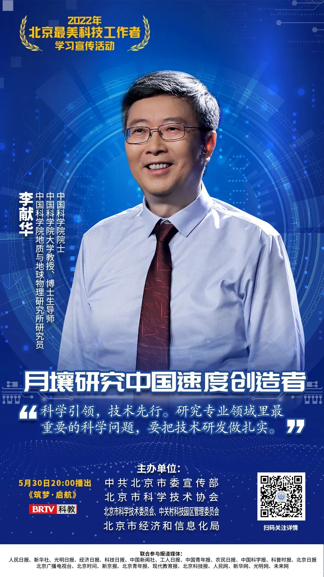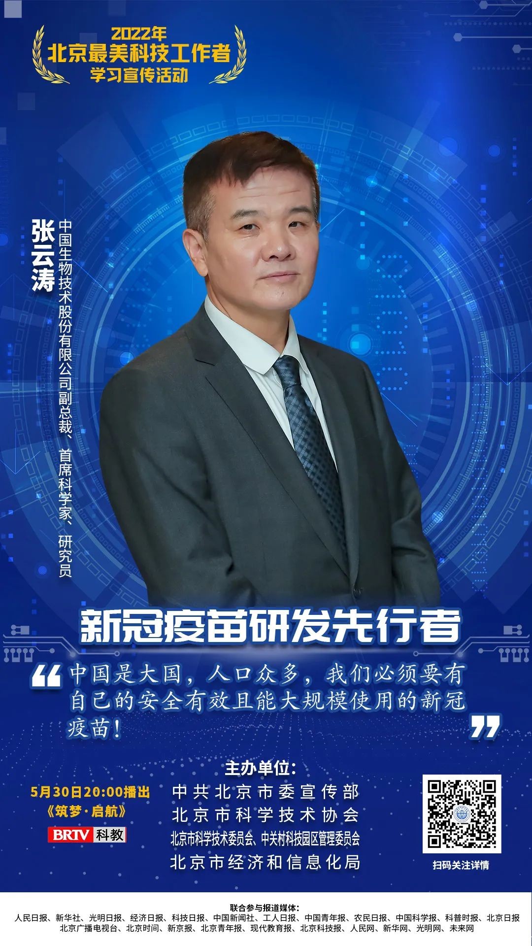 5月30日20:00,北京市科协联合北京广播电视台拍摄的专题片《筑梦·启航》——2022年北京“最美科技工作者”学习宣传专题节目将在北京广播电视台科教频道播出。
