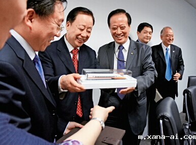 2010年12月,在基金会代表团赴台参加“2010年海峡两岸土木工程及轨道交通学术交流活动”中,团长孙永福院士向台湾交通主管部门负责人毛志国赠送纪念品。