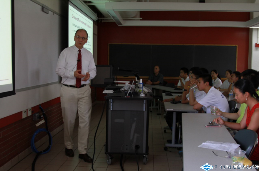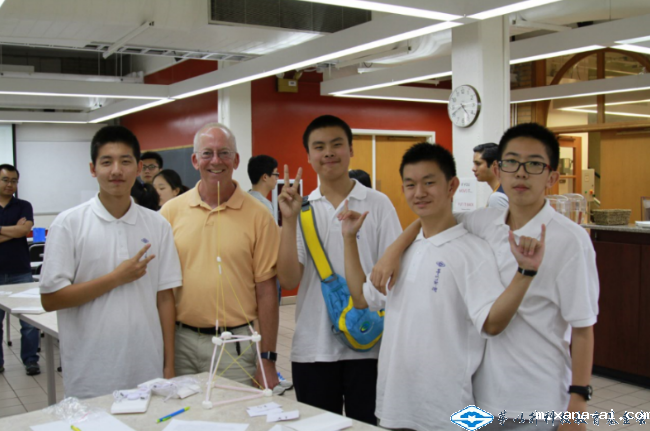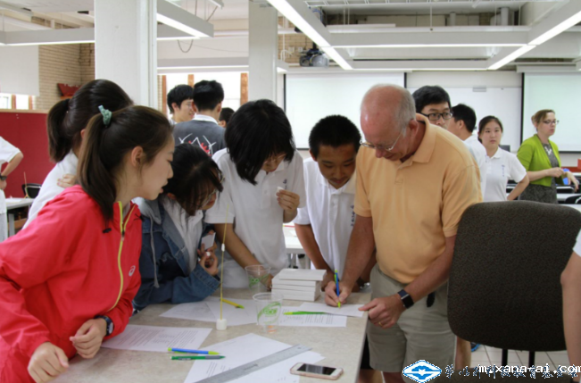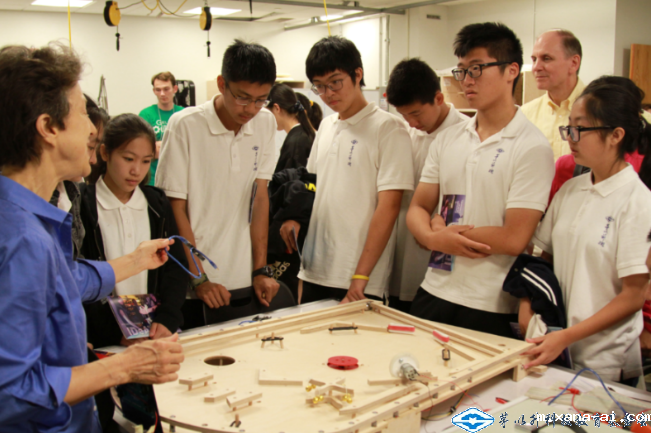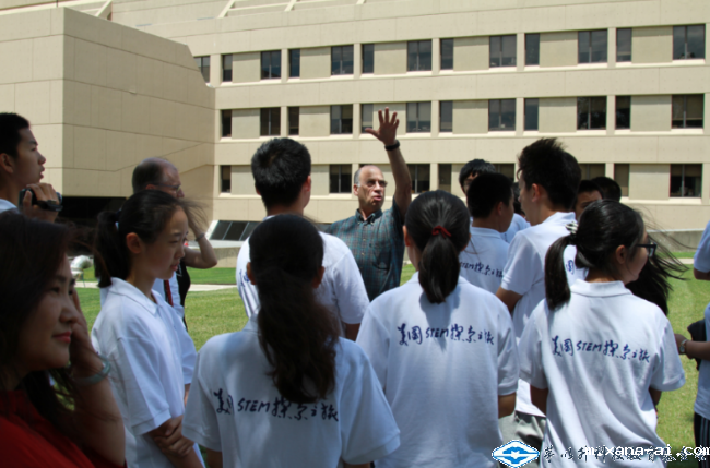 同学们在环境工程Martin教授的引领和介绍下,了解了环境工程系正在进行的几个项目。 一个个看似简单的创意,都凝聚了一届又一届学生的智慧和教授的心血。“哇!真的吗?”这句话变成了孩子们最常说的一句,在赞叹美国科技进步神速的同时,也在心底埋下了科技创新的种子。