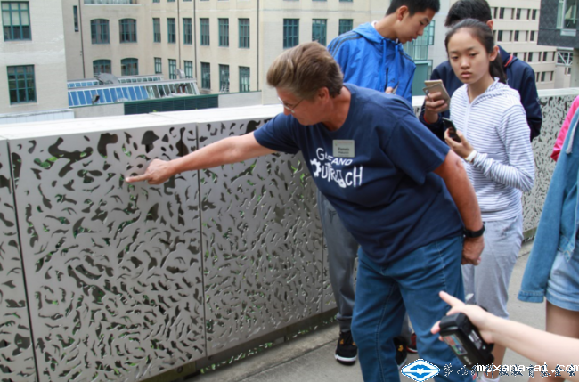 同学们还跟着Pam教授徜徉在CMU美丽的校园里,被一个个神奇而有趣的创意所吸引,特别是为纪念把电脑科学与艺术联系起来的Randy Pausch教授而建的Pausch桥,让孩子们饶有兴趣地在桥上的每一块电脑镂空的钢板上寻找敢于投身大海、象征勇敢拼搏精神的小企鹅形象。